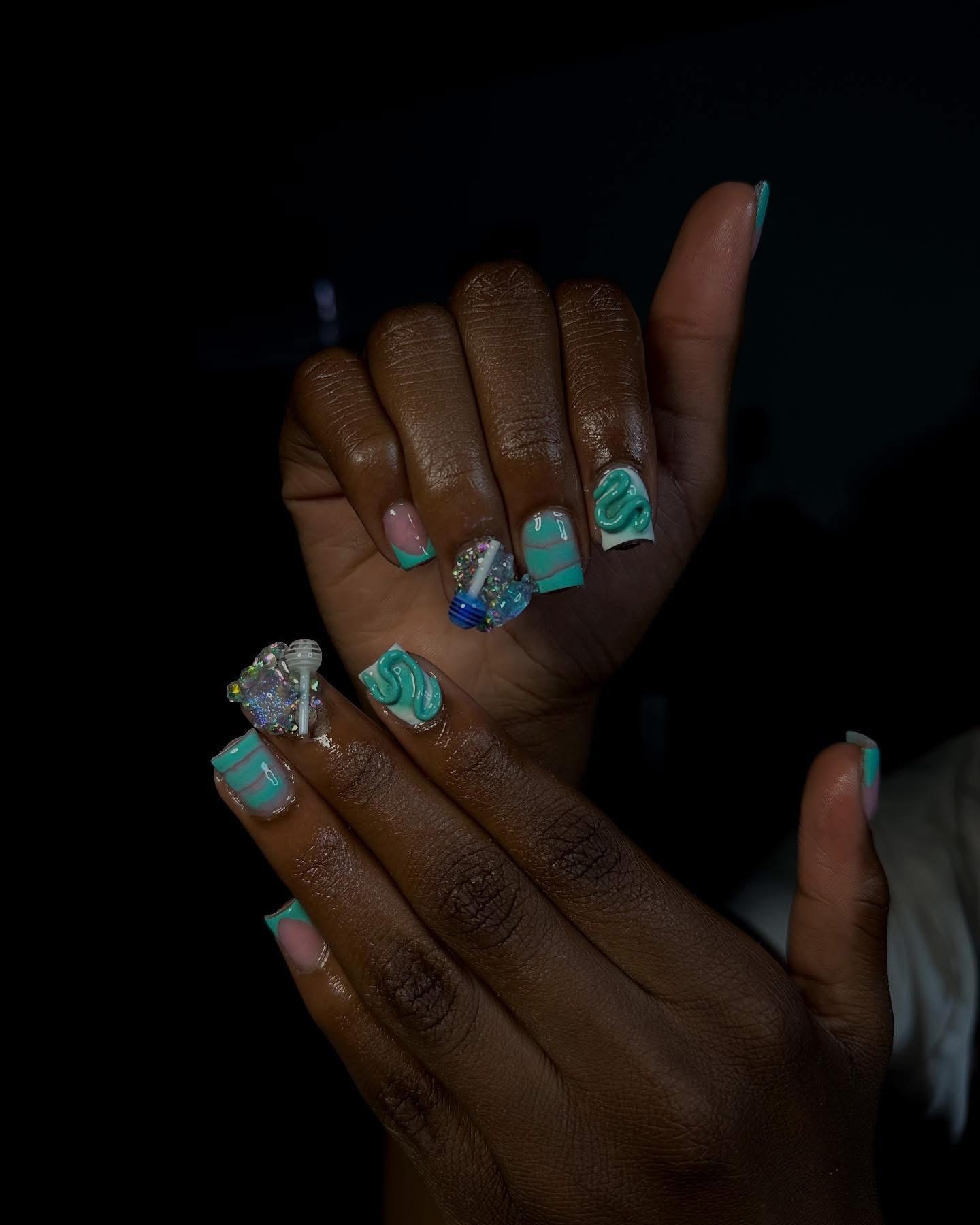 Custom nail art, specialty polish, shaping, and embellishments available.